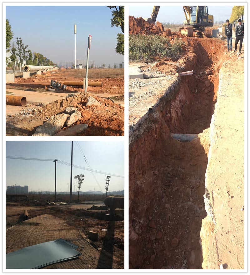 ?、俳鹑瘌欀Ь€已完成90%架空管道安裝,下埋完成4段過馬路地埋,目前剩余最后一根地埋管及金瑞鴻門口一小段架空管道。